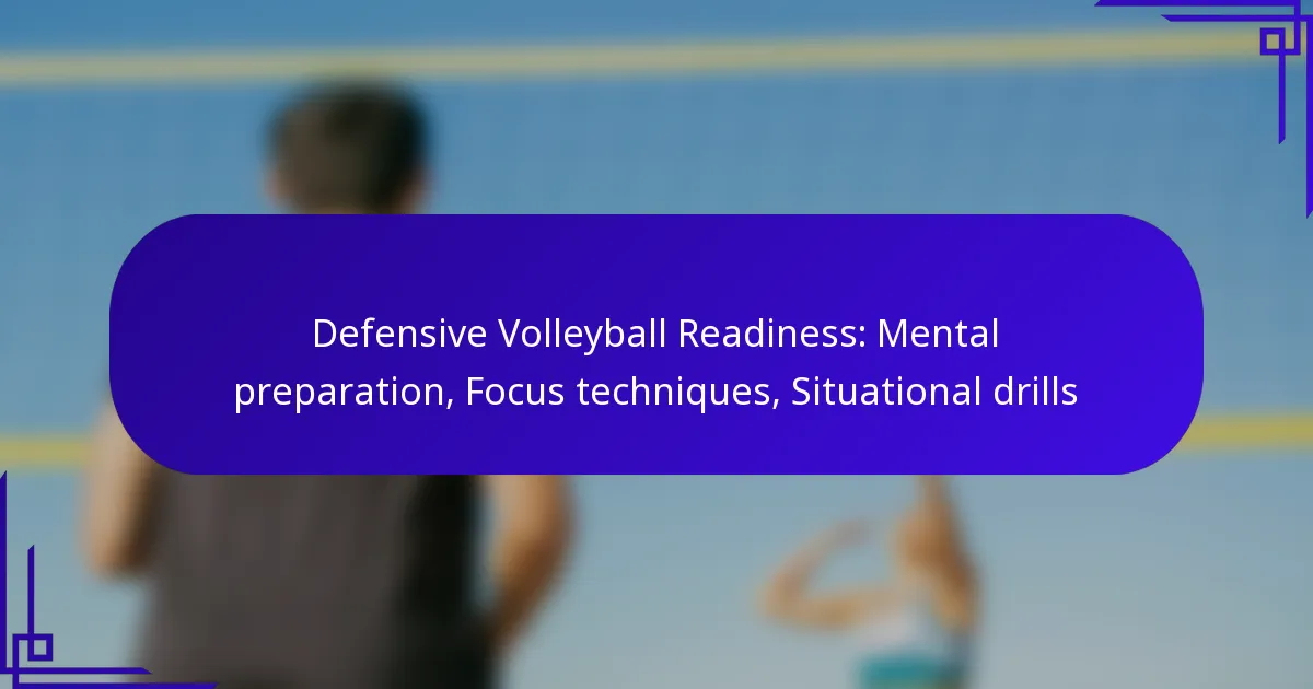 Defensive volleyball readiness is essential for players to perform effectively during matches, combining mental and physical preparedness for quick and accurate responses. This readiness involves mental preparation techniques that enhance focus, boost confidence, and manage anxiety, alongside situational drills tailored to improve reaction times in various game scenarios.