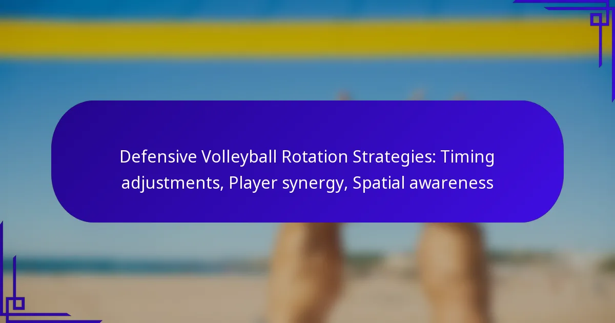 Defensive volleyball rotation strategies are vital for optimising team performance and ensuring effective court coverage. By focusing on timing adjustments, player synergy, and spatial awareness, teams can enhance their ability to counteract opposing attacks and improve their overall defensive capabilities.