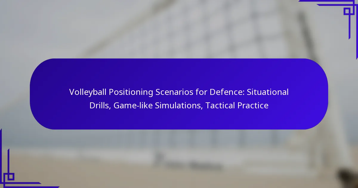 Effective defensive positioning relies on a combination of situational drills and tactical simulations. These practices help players understand their roles and responsibilities on the court, ensuring they can react quickly to opposing plays. Regularly practicing specific scenarios, such as defending against a strong hitter or covering tips and roll shots, sharpens players’ instincts and decision-making skills.